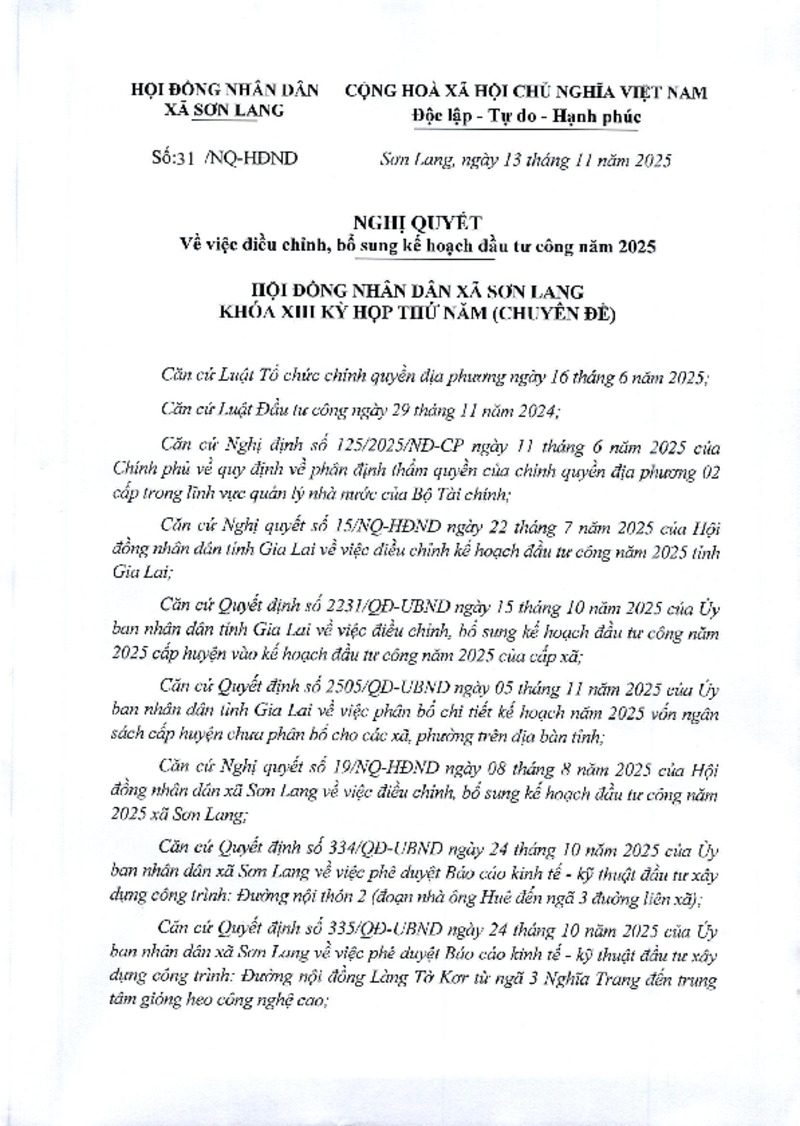 | Tiêu đề văn bản | Nghị quyết điều chỉnh, bổ sung kế hoạch đầu tư công năm 2025 | ||
