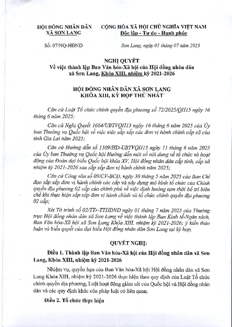 | Tiêu đề văn bản | Nghị quyết thành lập Ban Văn hóa - Xã hội HĐND xã Khóa XIII, nhiệm kỳ 2021 - 2026 | ||