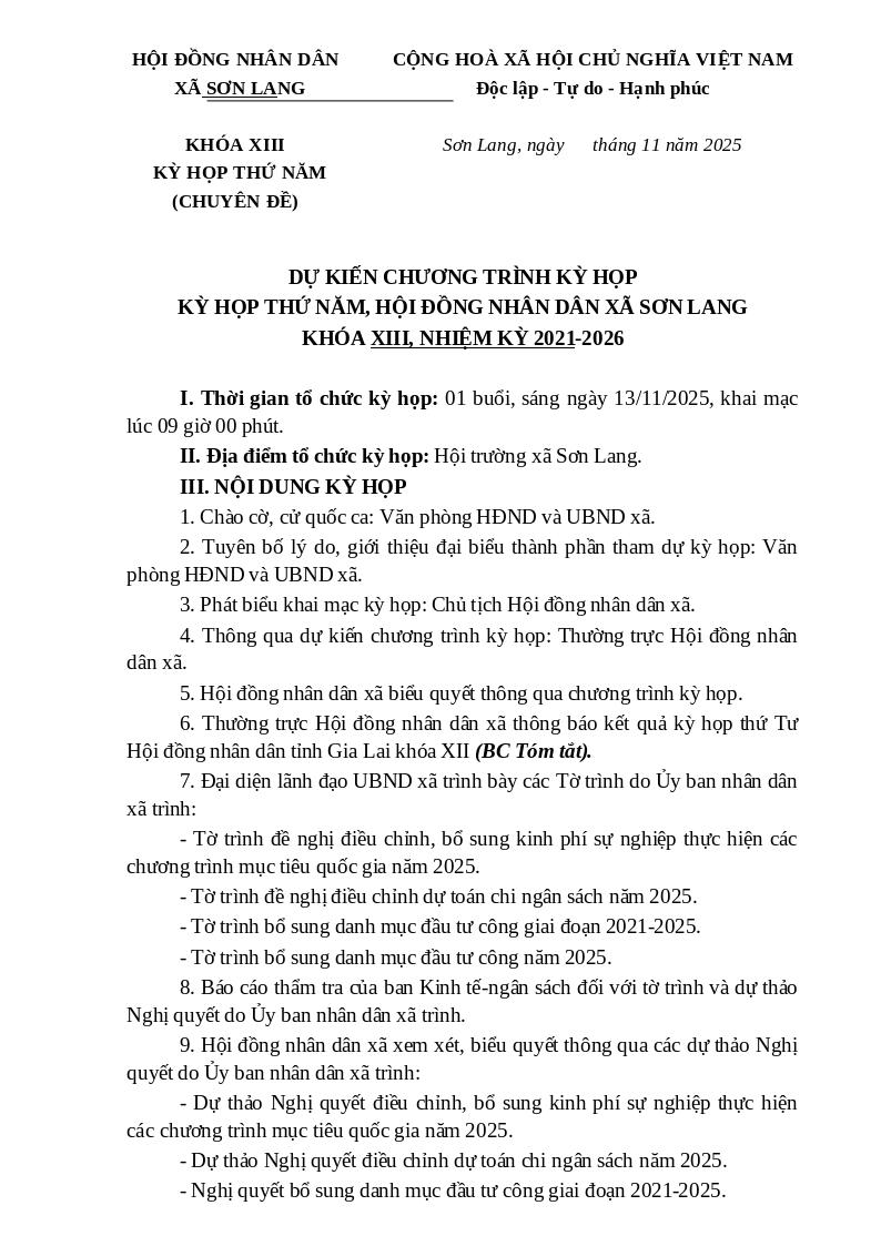 Tài liệu kỳ họp thứ năm (chuyên đề) HĐND xã khóa XIII